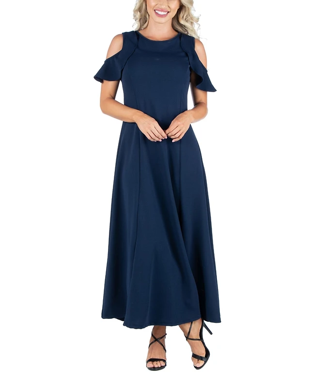 24seven Comfort Apparel Women's Cold Sholder Ruffle Sleeve A Line Maxi Dress