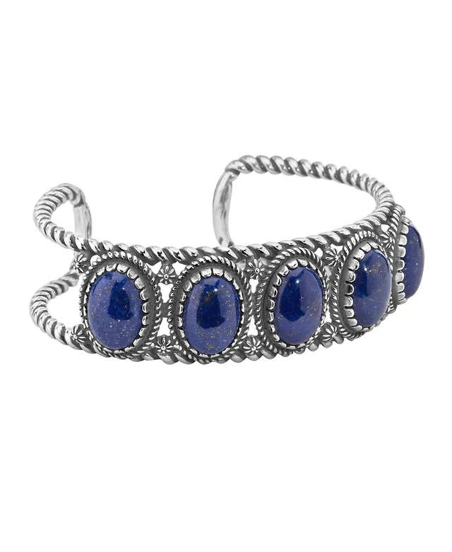 American West Lapis Lazuli Decorative Cuff Bracelet Sterling Silver