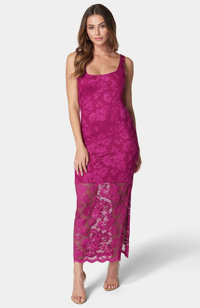 Bebe Women's Lace Up Back Chiffon Midi Dress