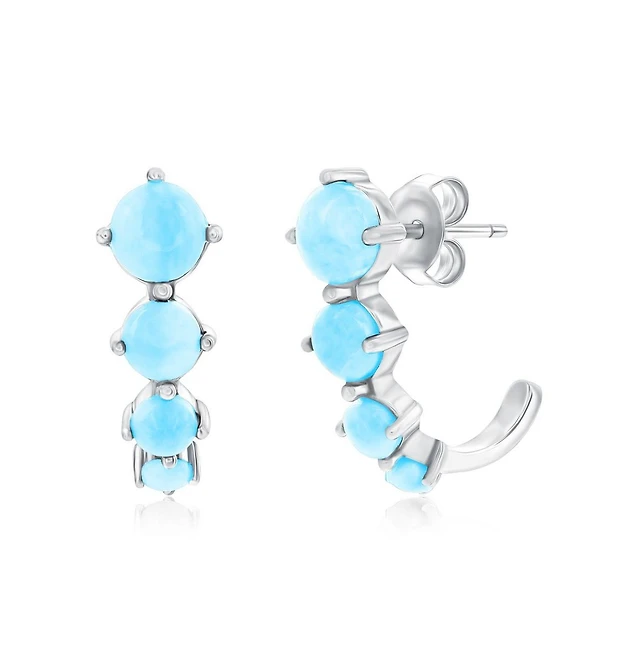 Caribbean Treasures Sterling Silver, Triple Cluster Larimar Studs