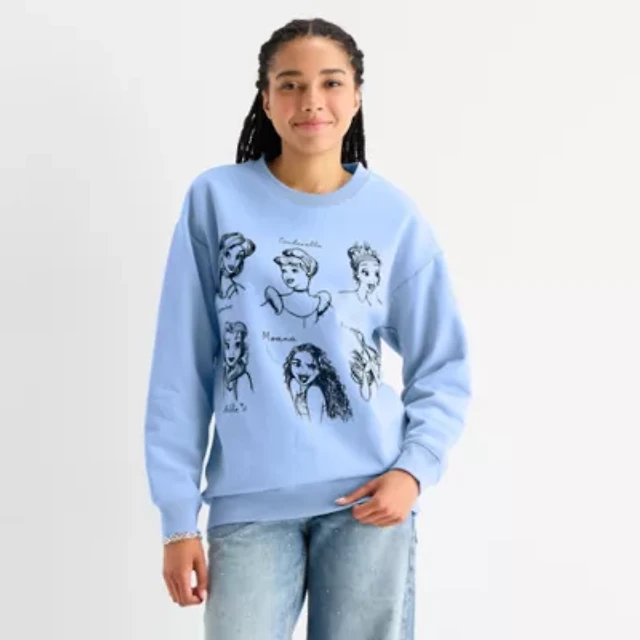 Womens Juniors Crew Neck Long Sleeve Princess Sweatshirt