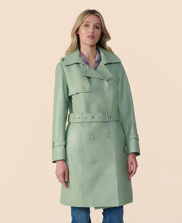 Furniq Uk Women's Genuine Leather Trench Coat, Beige
