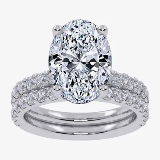 Signature By Modern Bride (G / Si1-Si2) Womens 4 CT. T.W. Lab Grown White Diamond 10K Gold Oval Side Stone Bridal Set