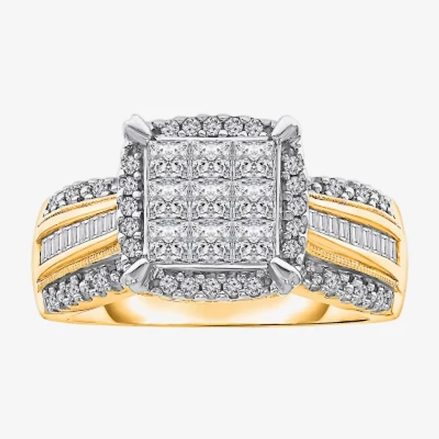 (I / I1) Womens 1 CT. T.W. Lab Grown White Diamond 10K Gold Side Stone Halo Engagement Ring