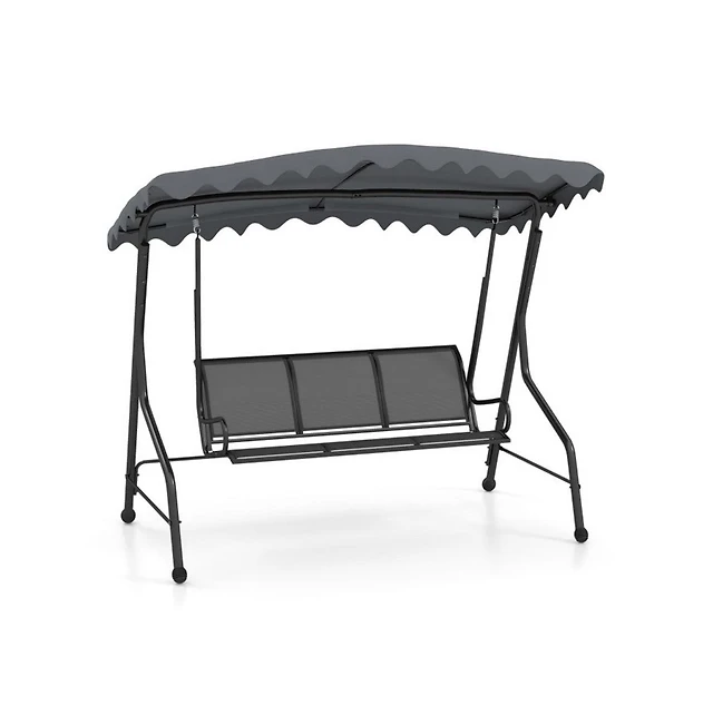 2-Seat Outdoor Cushioned Porch Swing with Adjustable Canopy and Tempered Glass Table
