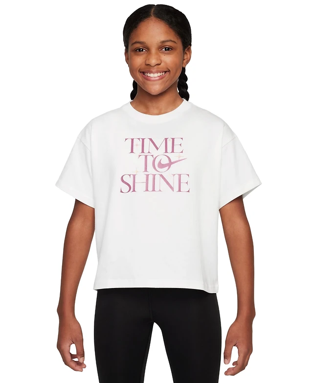Nike Big Girls Sportswear Time to Shine Graphic Cotton T-Shirt