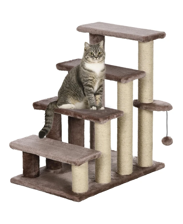 PawHut 4 Levels Cat Steps with Scratching Posts for High Bed, Sofa,