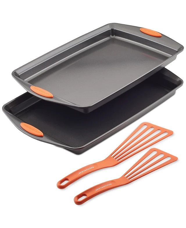 Rachael Ray Bakeware Oven Lovin' Nonstick Double Batch Cookie Pan and Utensil Set, 4-Pc., Orange Handles