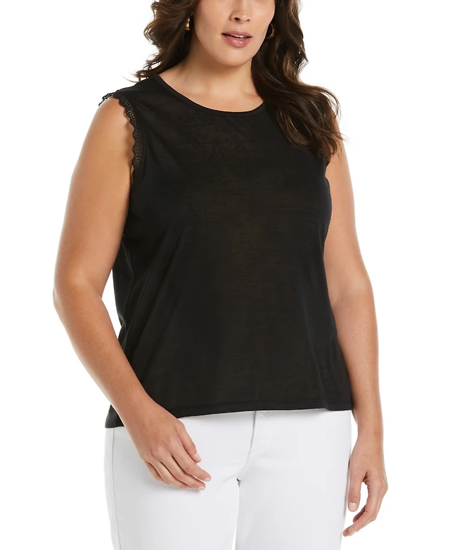 Ella Rafaella Plus Crochet Trim Sleeveless Top