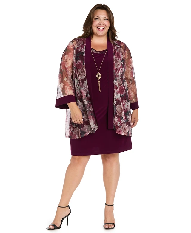 R & M Richards Plus 2-Piece Floral Jacket and Scoop Neck Dress