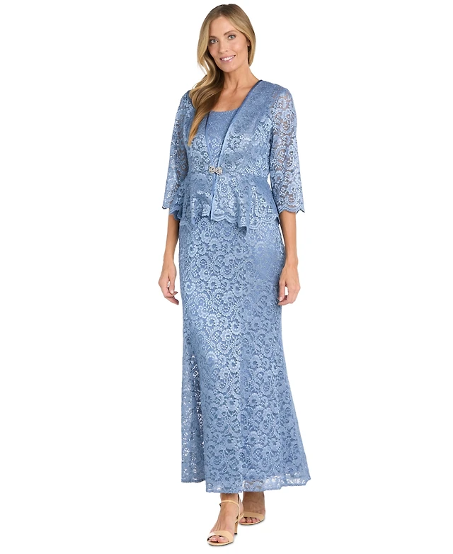 R & M Richards Women's Glitter Lace Gown Jacket