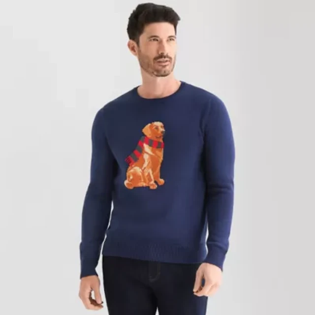 St. John's Bay Intarsia Dog Mens Crew Neck Long Sleeve Pullover Sweater