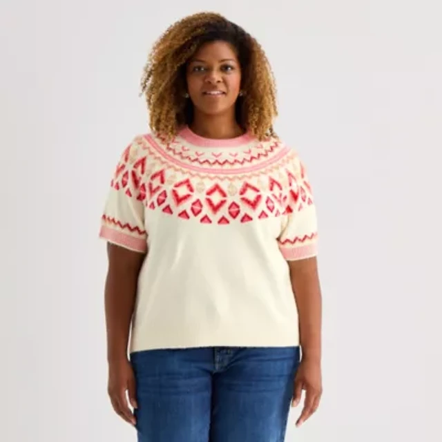 St. John's Bay Plus Womens Crew Neck Short Sleeve Pullover Sweater