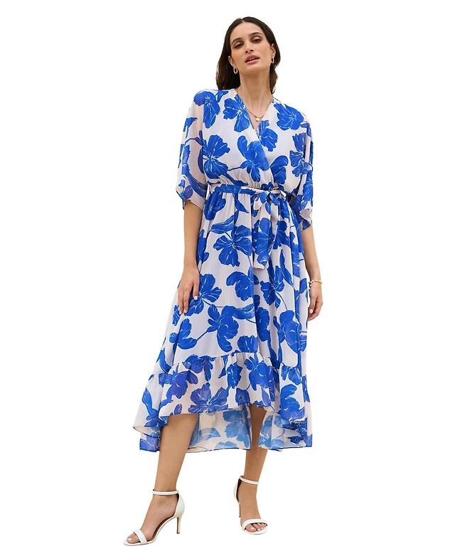 Yumi Women's Leopard Print Kimono Sleeve Wrap Dress