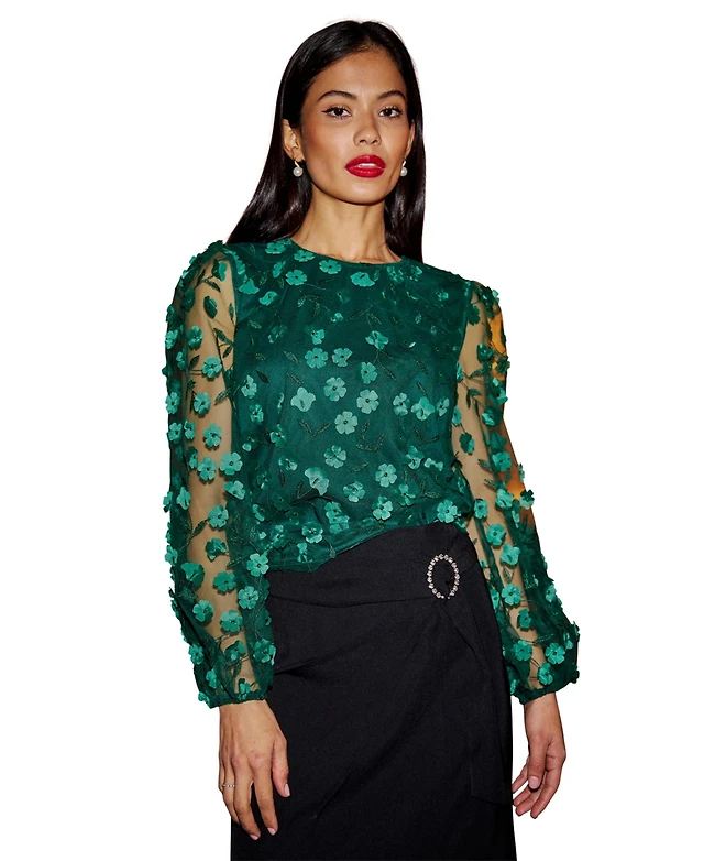 Yumi Women's 's Relaxed Fit Floral Sequin Sweater