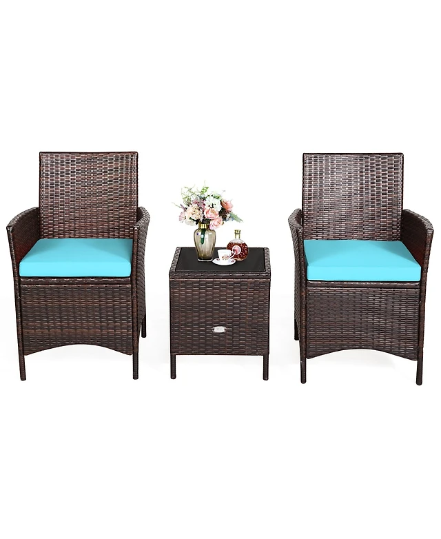 3 Pcs L-Shaped Patio Sofa Set Conversation Furniture with Cushions Deck Garden