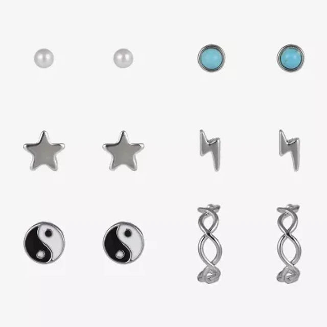 Anne Klein Silver-Tone Glass Stone Stud Earring Set