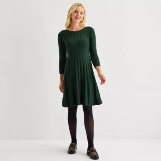 Jessica Howard Womens 3/4 Sleeve Bordered Sweater Dress