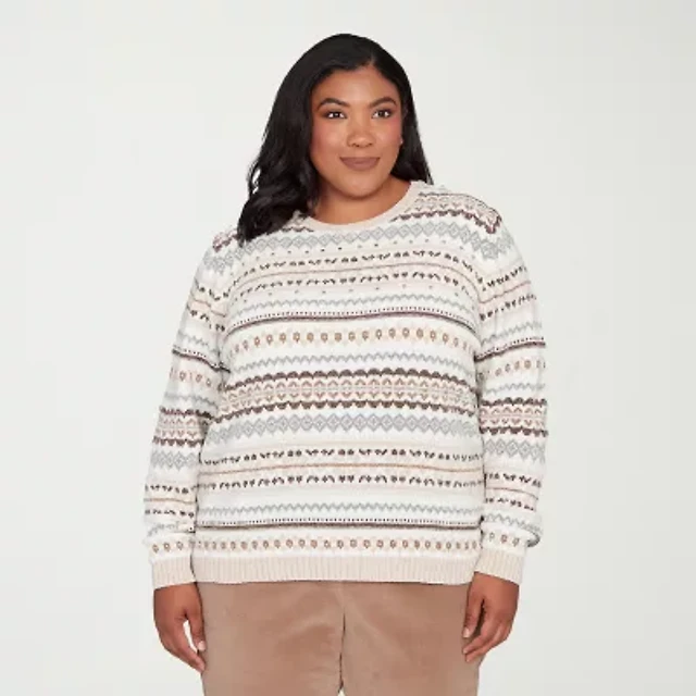Alfred Dunner Plus Womens Crew Neck Long Sleeve Pullover Sweater