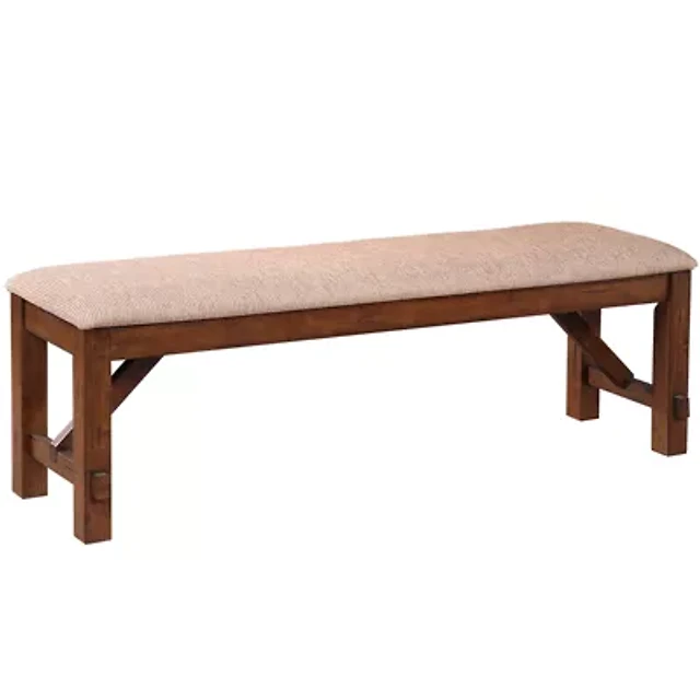 Jofran Telluride Rustic Farmhouse Solid Wood 55" Upholstered Dining Bench