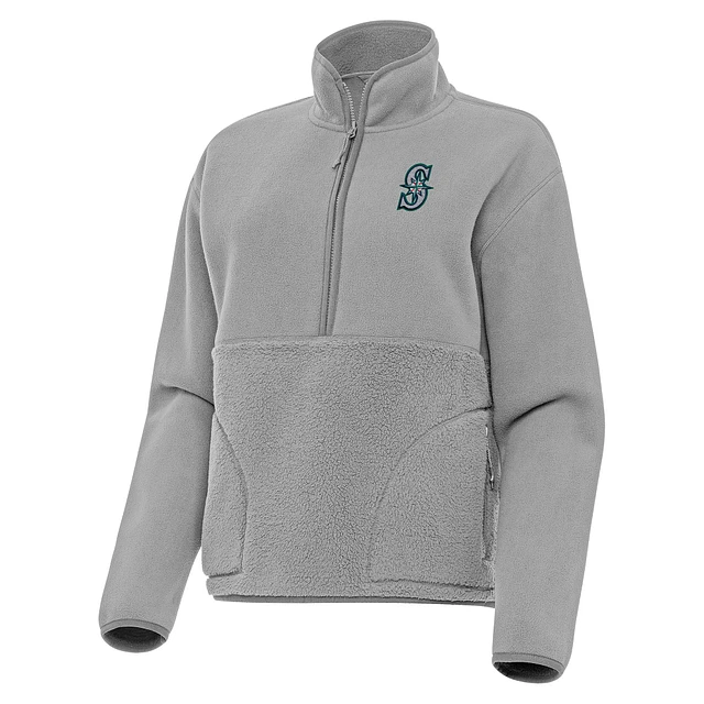 Women's Antigua Gray Seattle Mariners Figure Half-Zip Sweatshirt
