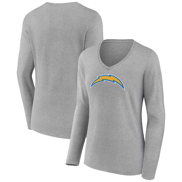 Women's Heather Gray Los Angeles Chargers Primary Team Logo Long Sleeve V-Neck T-Shirt