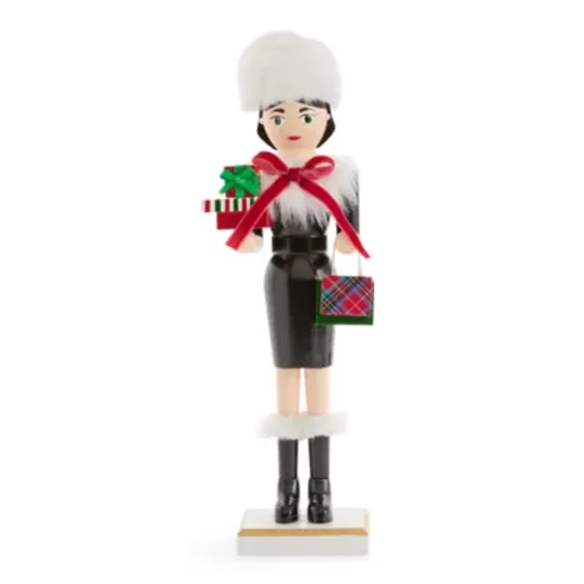 North Pole Trading Co. 14in Shopper Girl Wood Christmas Nutcracker