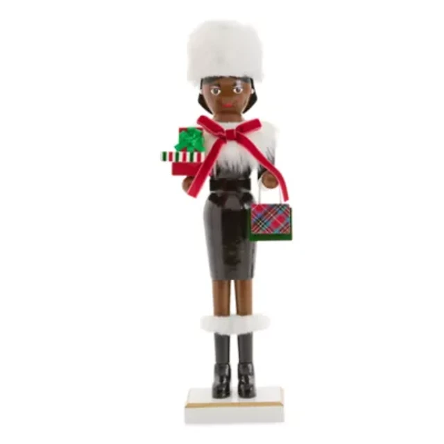 North Pole Trading Co. 14in Shopper Girl African American Wood Christmas Nutcracker