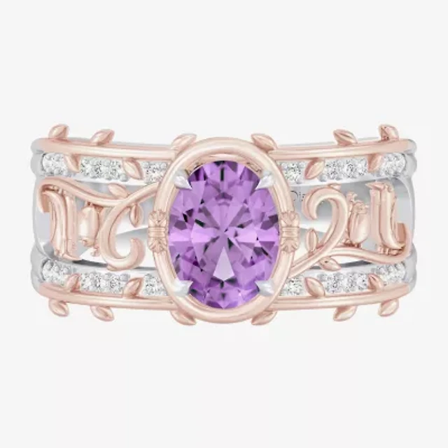 Womens Gemstone & 3/8 CT. T.W. Lab-Grown Diamond Sterling Silver Oval 3-Stone Cocktail Ring