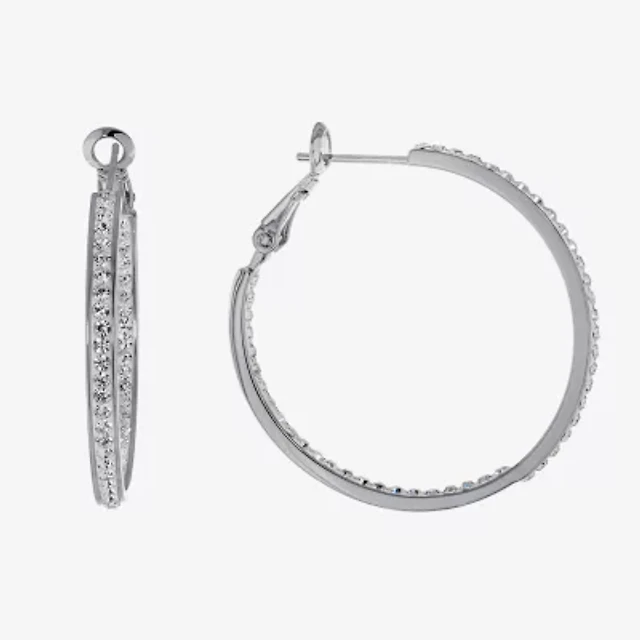 Yes, Please! Womens Lab Created White Sapphire Sterling Silver 16.1mm Hoop Earrings